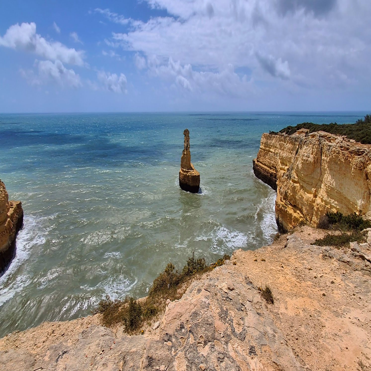 We drive south, through fields and orchards, to a lesser known part of the coast, where there are sand roads, pine trees, cliffs and unspoilt views.